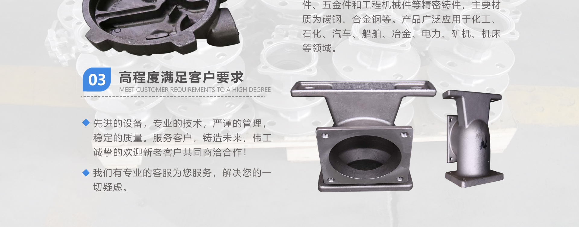 安徽偉工機(jī)械科技有限公司,坐落于安徽蕪湖新蕪經(jīng)濟(jì)開(kāi)發(fā)區(qū),是一家専業(yè)從事鑄造產(chǎn)品設(shè)計(jì)、研發(fā)、生產(chǎn)、銷(xiāo)售于一體的企業(yè),公司為客戶(hù)的產(chǎn)品提供多樣的技術(shù)支持與設(shè)計(jì),公司主要鑄造技術(shù)有潮模砂鑄造、硅溶膠精鑄工藝。主要產(chǎn)品有:不銹鋼閥門(mén)配件、泵閥配件、汽車(chē)配件、工業(yè)管道配件、工程機(jī)械配件、汽車(chē)配件等。材質(zhì)為:低合金鋼、304、316、316L、鉻鉬鋼、哈氏合金、碳鋼、雙相鋼等。公司已先后通過(guò)ISO9001和TS16949等多種體系審核,以完備的管理手段和齊全的檢測(cè)設(shè)備滿(mǎn)足客戶(hù)需求,進(jìn)的設(shè)備,専業(yè)的技術(shù),嚴(yán)謹(jǐn)?shù)墓芾恚€(wěn)定的質(zhì)量。服務(wù)客戶(hù),鑄造未來(lái),偉工誠(chéng)摯的歡迎新老客戶(hù)共同商洽合作